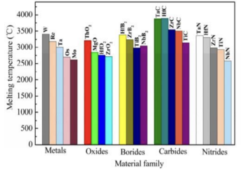 不同類型的耐火材料熔點對比--碳化鋯的性能優(yōu)勢