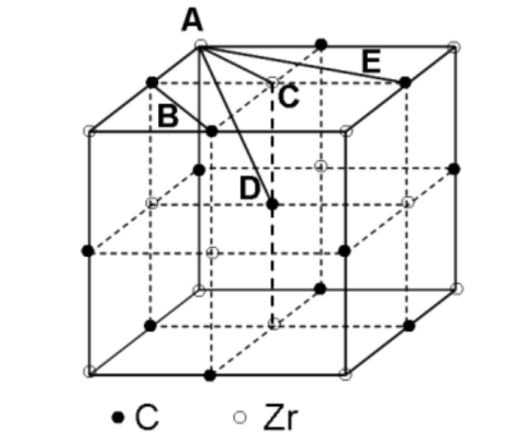 下圖是ZrC的晶體結(jié)構(gòu)(面心立方晶體結(jié)構(gòu)),Zr原子組成立方晶格,C原子位于晶格的八面體間隙位置。在碳-鋯化學反應(yīng)系統(tǒng)中存在很寬范圍的非化學計量現(xiàn)象,即ZrCx(0.5≤x≤1)。因此碳化鋯(ZrC)是一種非化學計量間隙化合物,ZrC陶瓷材料中普遍存在著碳空位。