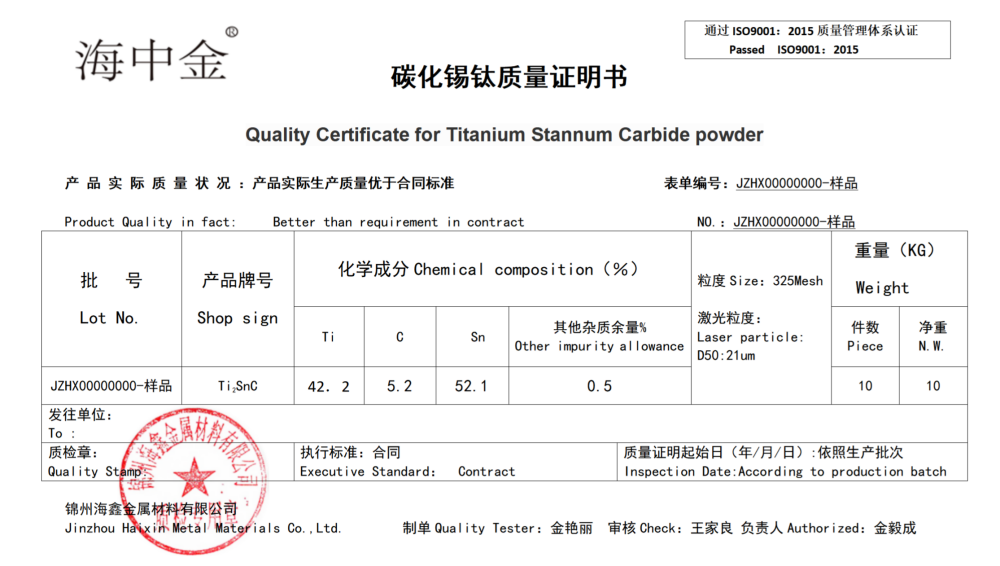 產品名稱:碳化錫鈦(Ti2SnC)
