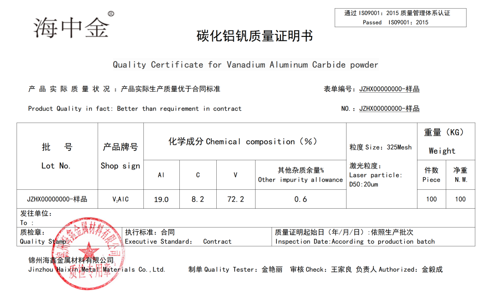 產(chǎn)品名稱:碳化鋁釩(V2AlC)