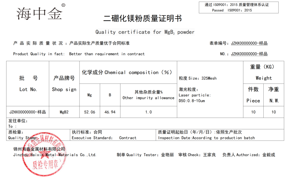 產(chǎn)品名稱:二硼化鎂(MgB2)