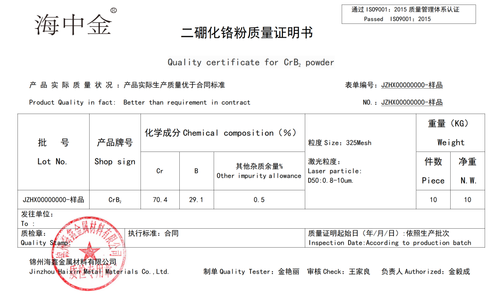 產(chǎn)品名稱:二硼化鉻(CrB2)