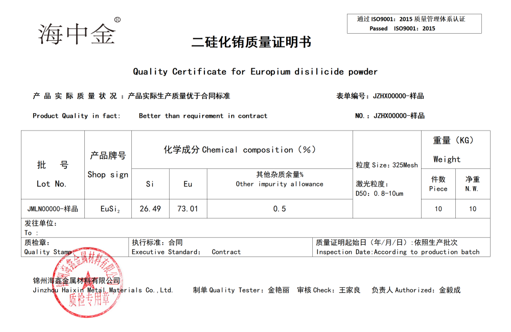 產(chǎn)品名稱:二硅化銪(EuSi2)