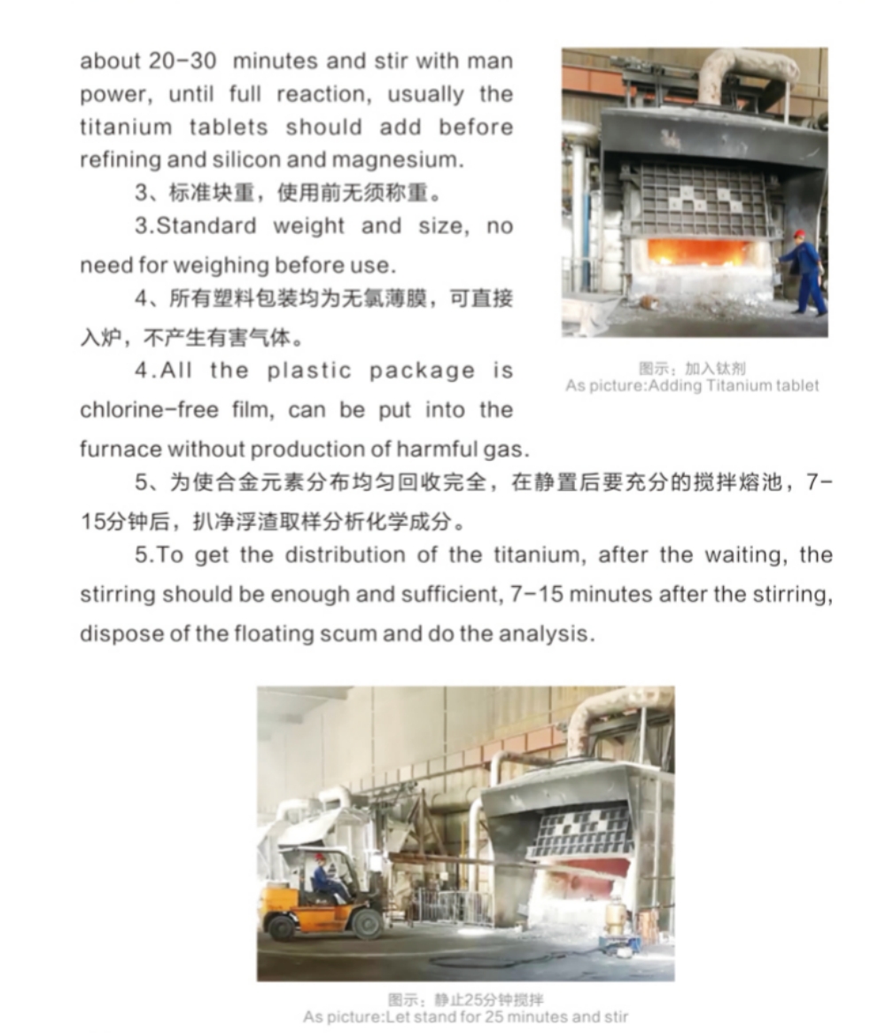 鈦劑在合金中的添加需要通過助熔劑來實現(xiàn)。助熔劑是一種能夠降低金屬的熔點并促進其液相分散的物質(zhì),以便均勻地將鈦、常用的助熔劑包括